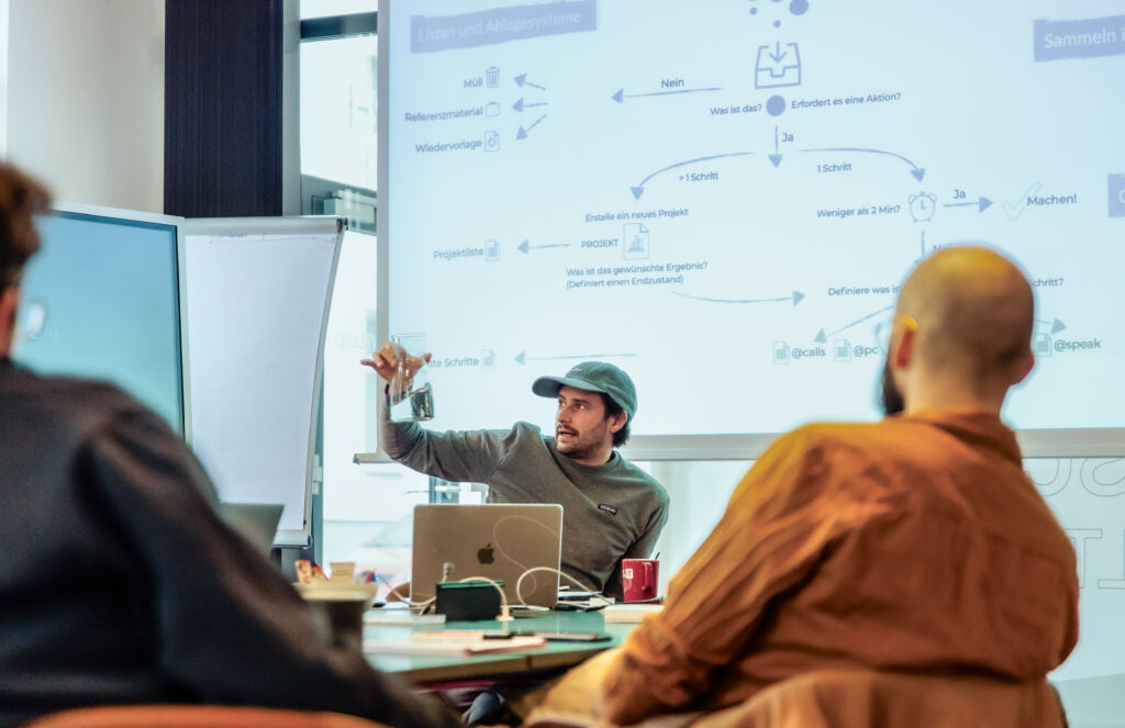 - Selbstmanagement – z.B. bei der Entwicklung eines eigenen Selbstmanagementsystemes mit meiner eigenen Methode „GSD – Getting Stuff Done„